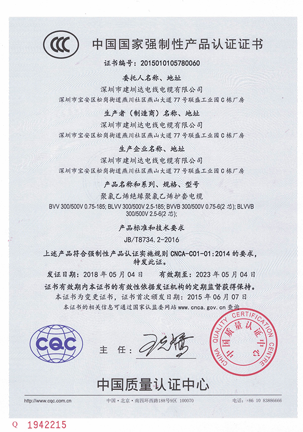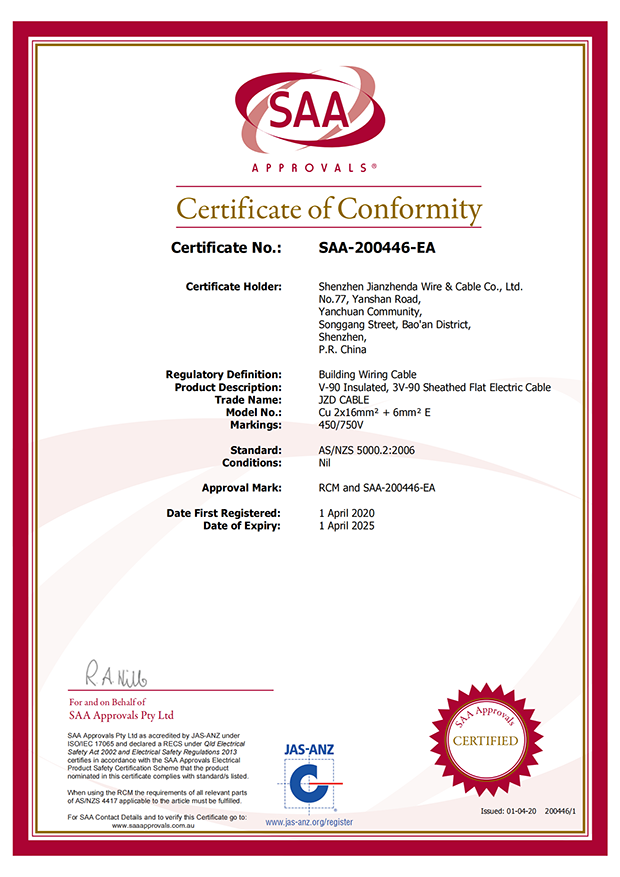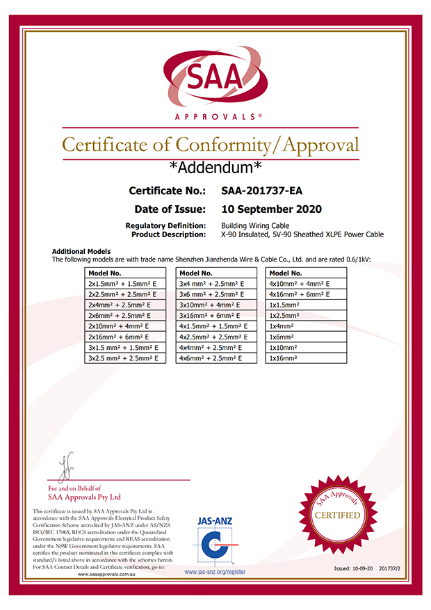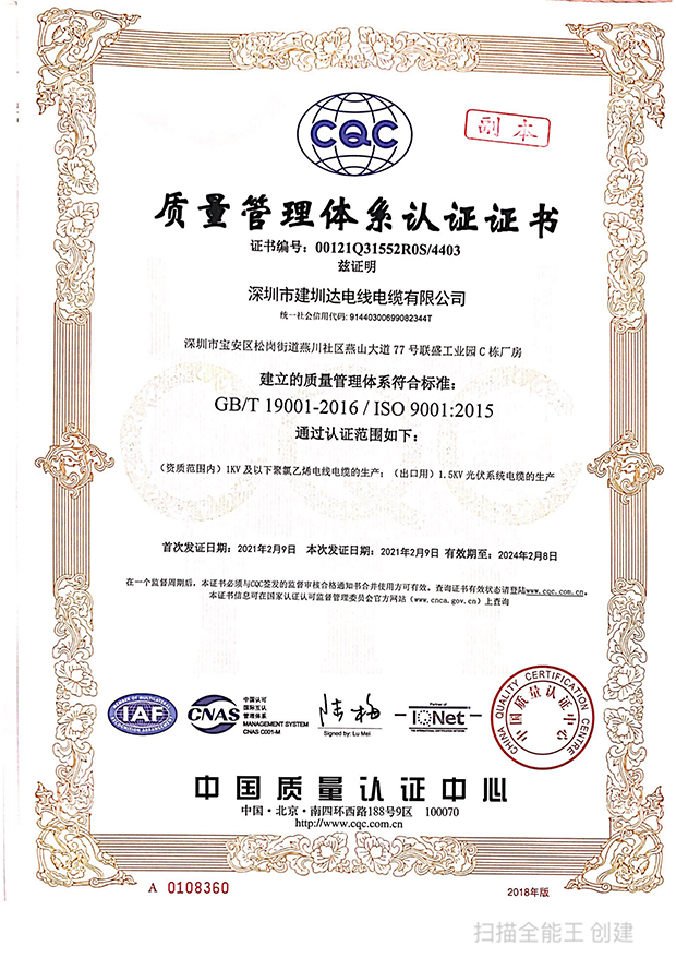 深圳建圳達(dá)電線(xiàn)電纜有限公司,成立于2000年,是一家電線(xiàn)電纜制造商,我們通過(guò)了世界各地不同市場(chǎng)的多數(shù)認(rèn)證,如:CCC、RoHS、CB、SAA、TUV、VDE、PSE、BPS、UL、CSA。我們根據(jù)定制產(chǎn)品不斷更新新的認(rèn)證。經(jīng)過(guò)數(shù)十年的發(fā)展,我們與來(lái)自世界各地的客戶(hù)建立了長(zhǎng)期的合作關(guān)系。我們?cè)?jīng)是菲律賓機(jī)場(chǎng),,柬埔寨的電力站,美國(guó)的醫(yī)院,工廠,埃塞俄比亞的水電站項(xiàng)目。我們是一家值得信賴(lài)的電線(xiàn)供應(yīng)商。